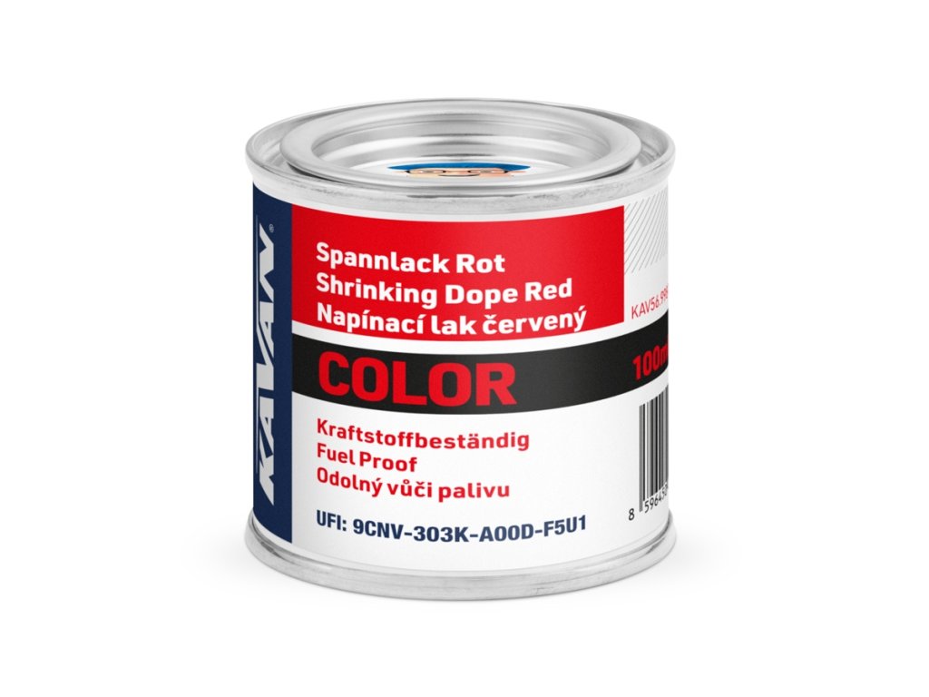 Červený nitrolak pro napínání potahových papírů a pláten odolný vůči žhavícímu palivu i benzínu. Pro nanášení štětcem, válečkem nebo stříkáním.