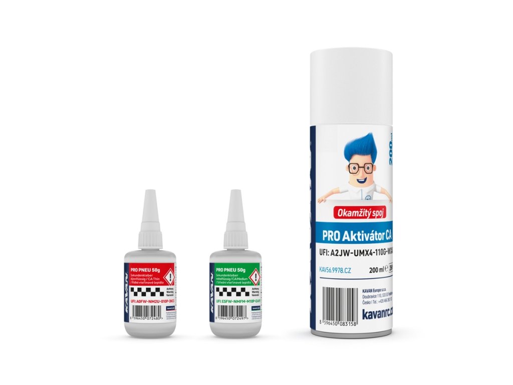 KAVAN PRO PNEU střední a řidké vteřinové lepidlo 50g + Kavan PRO aktivátor CA 200ml