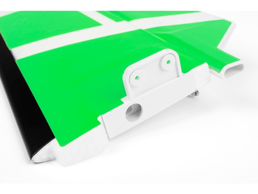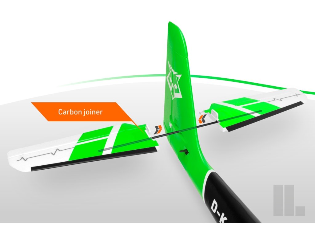 Křídlo modelu z pěnového EPO je dvojdílné s uhlíkovými nosníky, jejichž vyčnívající části slouží zároveň jako spojka křídla zapadající do duralových pouzder v trupu. Poloviny křídla jsou na místě zajištěny plastovým šroubem. Křidélka (vyztužená uhlíkovou pásnicí) i klapky jsou ovládány nezávisle vždy dvěma servy s krátkými přímými drátovými táhly.
