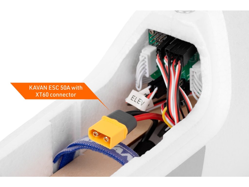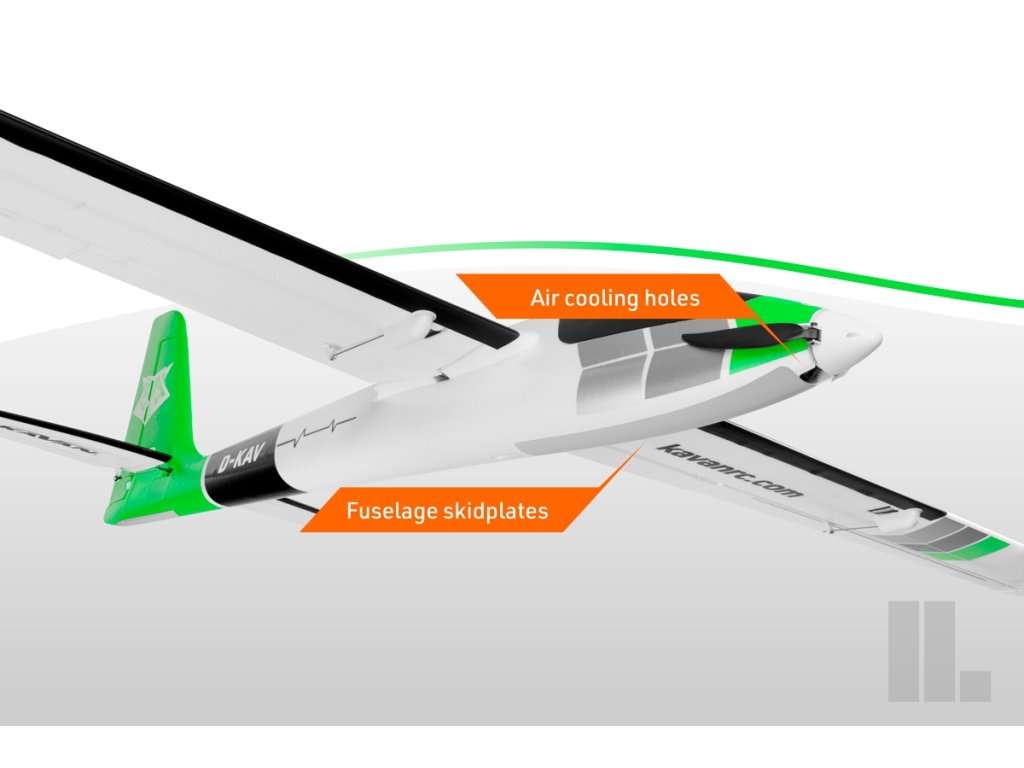 Trup modelu je zhotoven z vysoce odolného pěnového EPO (extrudovaného polyolefinu) s důkladnými vnitřními výztuhami. V přídi je nainstalován střídavý elektromotor C3548-750 se sklopnou vrtulí 11×8“ a regulátorem KAVAN R-50SB Plus s výkonným BEC stabilizátorem napájení potřebným pro napájení 6 serv na palubě. Kryt kabiny je odnímatelný, upevňuje se pomocí čepu vpředu a magnetu vzadu. V přídi najdete dostatek prostoru pro pohonný akumulátor a přijímač. Serva směrovky a výškovky jsou uložena v ocasní části trupu, kormidla ovládají krátkými přímými drátovými táhly.
