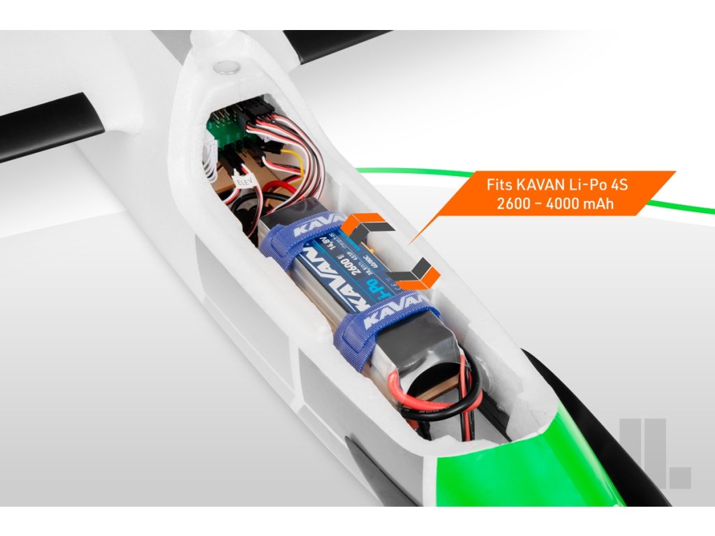 Pro napájení budete potřebovat LiPo čtyřčlánek s kapacitou 2600–4000 mAh se zatížitelností aspoň 30C. Konkrétní typ volte tak, aby vám bez dalšího dovažování co nejlépe vycházela správná poloha těžiště.