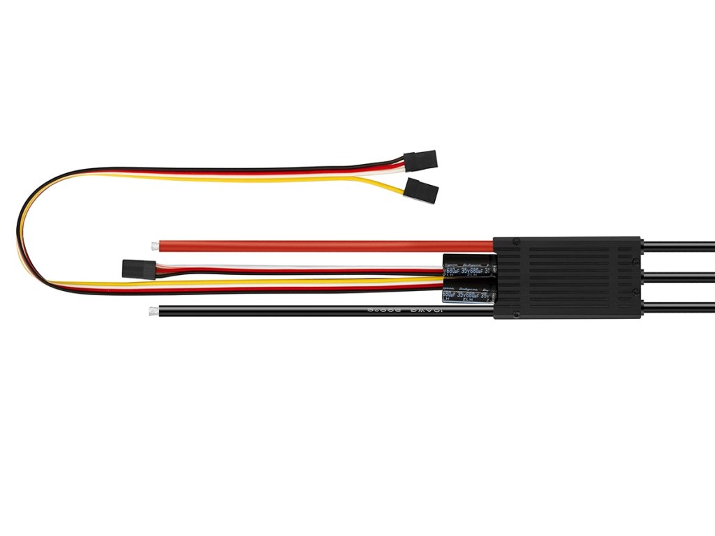 - Vhodný pro valnou většinu leteckých střídavých motorů s napájením z akumulátorů 3–8S LiPo.