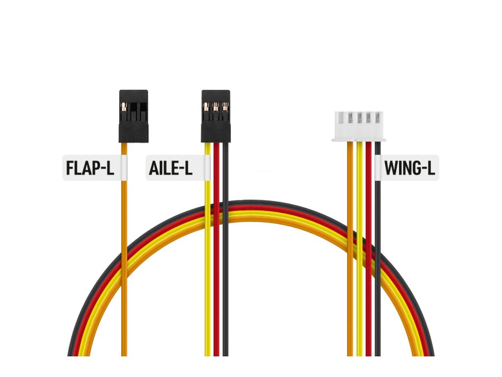 Pár redukčních silikonových kabelů pro zapojení levých a pravých křidélek i klapek do samostaných kanálů, slouží k jejich přesnému nastavení středu a výchylek, umožňuje použití mixů pro křídlo se 4 klapkami. Balení pro pravé i levé křídlo. Náhrada za položku KAV02.8091.9 .Doplňkové parametry