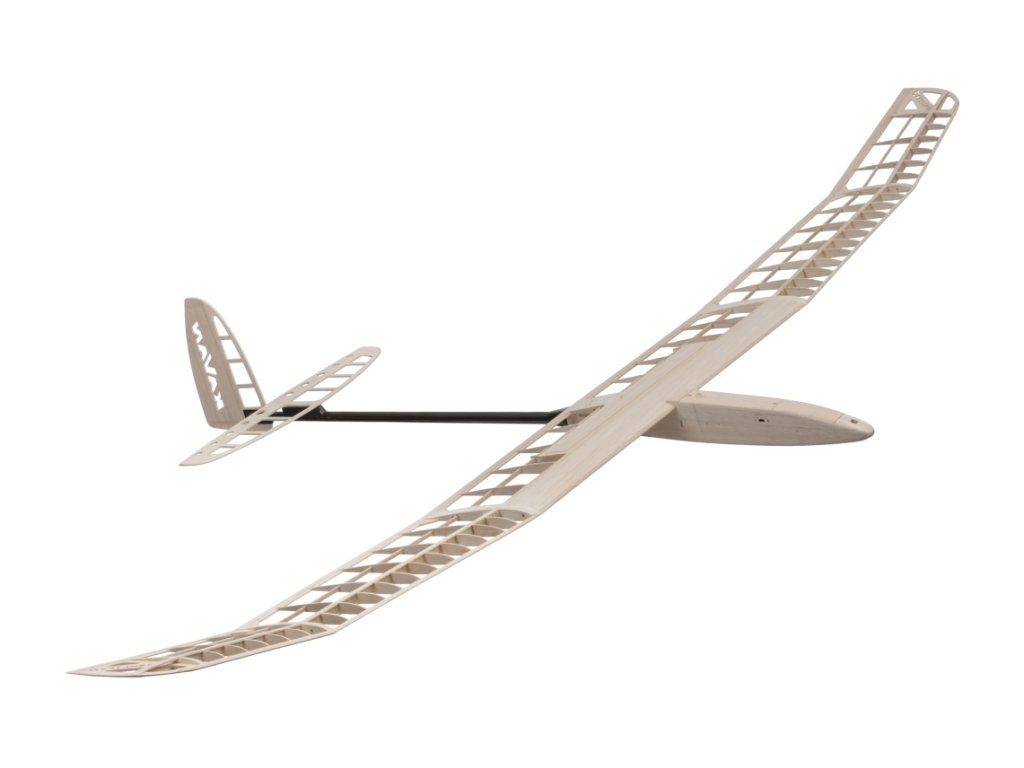 Trojdílné křídlo s modifikovaným profilem AG je klasické konstrukce s balsovými žebry a tuhým potahem torzní skříně na centroplánu. Hlavní nosník je tvořen pásnicemi ze smrkových lišt s balsovou stojinou, což zaručuje vysokou pevnost kostry při velmi nízké hmotnosti. Uši s elegantními winglety se k centroplánu připojují uhlíkovými spojkami a bukovými kolíky s magnety jako pojistkami. Ve středu centroplánu je umístěna výklopná aerodynamická brzda – tu doporučujeme nevynechat, zvláště pokud stavíte „čistý“ větroň. K trupu se křídlo upevňuje plastovými šrouby.