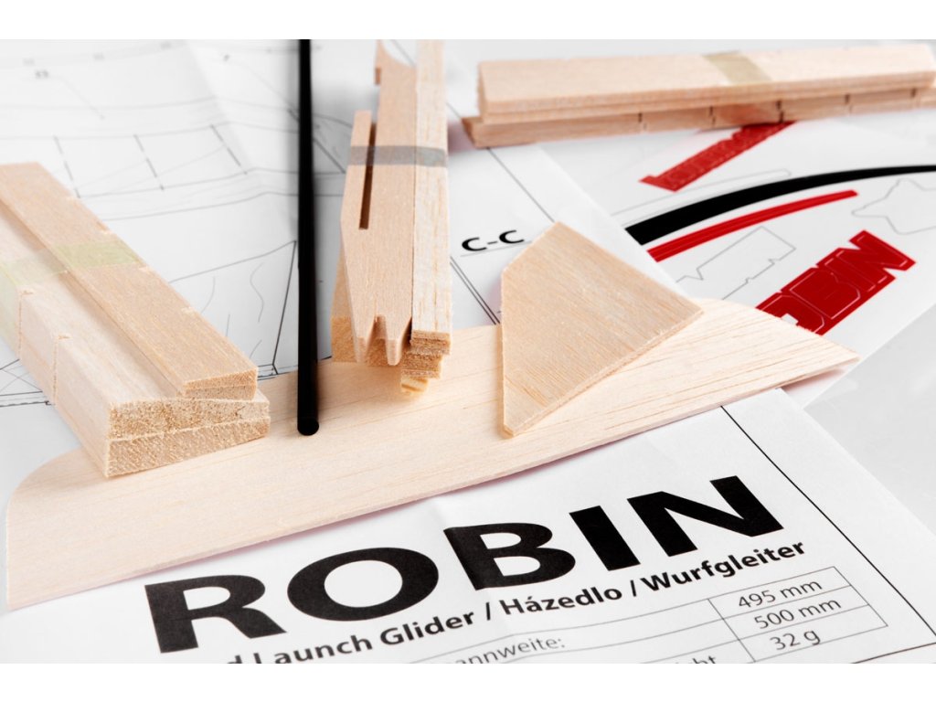 Vysokovýkonné soutěžní celobalsové házedlo kategorie H s konstrukčním křídlem potahovaným papírem a trupem s uhlíkovým ocasním nosníkem. Robin je jednoduchý model, který výborně poslouží pro seznámení se základy stavby celobalsových modelů s klasickým potahováním papírem.