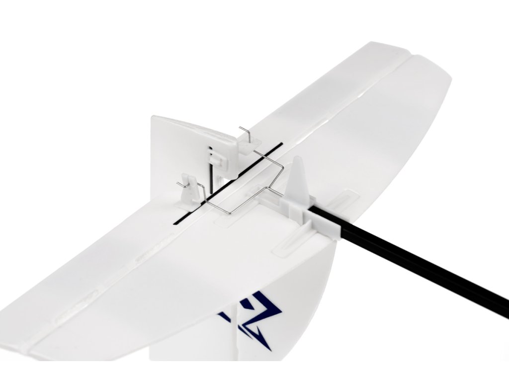 Křídlo je z takřka nezničitelného pěnového EPO s uhlíkovým hlavním nosníkem a plastovými výztuhami koncových oblouků opatřenými vždy trojicí otvorů pro zasunutí uhlíkového kolíčku pro diskový start. Model tak mohou stejně snadno „vrhat“ praváci i leváci; posouváním polohy kolíčku vzhledem k těžišti můžete optimalizovat chování modelu při startu s ohledem na sílu větru a vašeho švihu. Křídlo se k trupu upevňuje dvěma polyamidovými šrouby, takže celý model je možno složit do celkem malého objemu pro cestu na výlet nebo dovolenou.