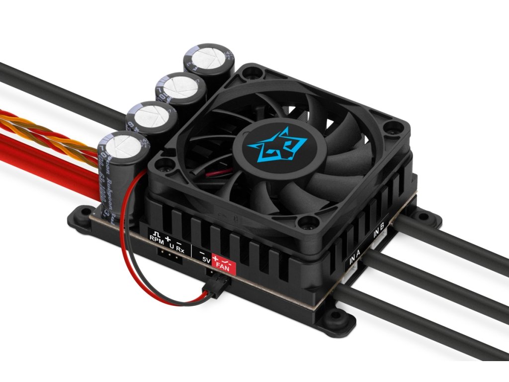 Výkonný regulátor BLDC motorů s trvalým proudem až 220A při napětí do 51V (12S LiPo). Se speciálním firmwarem možnost režimu startéru či starter-generátoru.