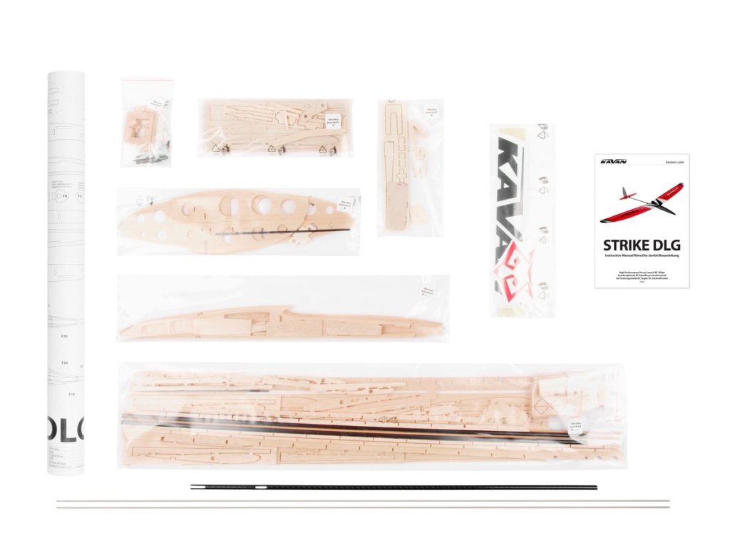 Stavebnice obsahuje: CNC vyřezávané balsové a překližkové díly, uhlíkové trubkové nosníky křídla, uhlíkový trubkový ocasní nosník, sadu příslušenství, arch samolepících obtisků, stavební plán v měřítku 1:1 a návod.