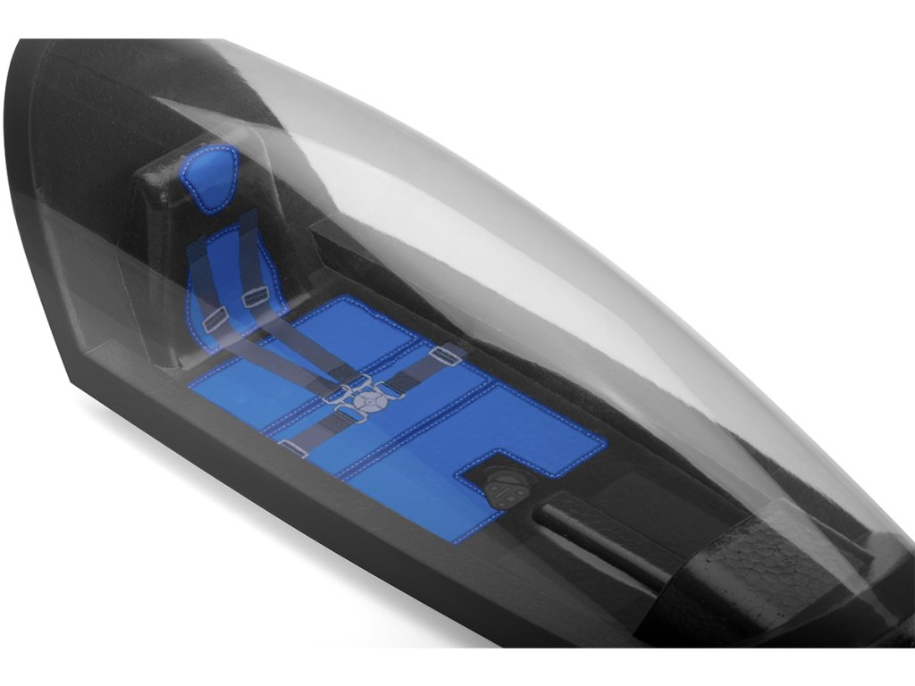 Trup modelu je zhotoven z vysoce odolného pěnového EPO (extrudovaného polyolefinu) s důkladnými vnitřními uhlíkovými výztuhami. V přídi je nainstalován střídavý elektromotor C3548-750 se sklopnou vrtulí 11x8“ a regulátorem KAVAN R-50SB s výkonným BEC stabilizátorem napájení potřebným pro napájení 4 silných mikroserv na palubě. Kryt kabiny je odnímatelný, upevňuje se pomocí čepu vpředu a magnetu vzadu. V přídi najdete dostatek prostoru pro pohonný akumulátor a přijímač. Serva směrovky a výškovky jsou uložena v kýlovce, kormidla ovládají krátkými přímými drátovými táhly.