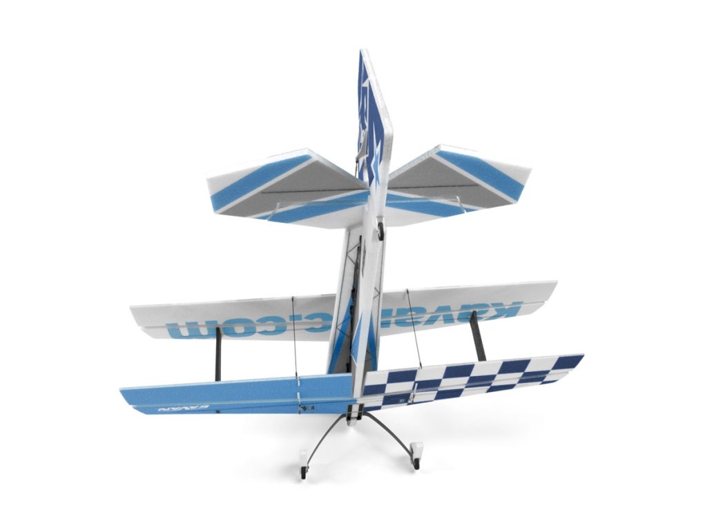 Jednodílná křídla s rozměrnými křidélky mají souměrný profil, pevnost jim dodávají uhlíkové nosníky a ve spodním křídle samozřejmě nechybějí připravené šachty pro serva. Vzpěra baldachýnu horního křídla vyztužená překližkovými díly je součástí trupu, mezikřídelní vzpěry jsou z EPP vyztuženého uhlíkem. Trup je profilový s vodorovnou částí důkladně vyztuženou uhlíkovými pásnicemi a svislou částí s velkou boční plochou pro dokonalé chování v nožovém letu. Promyšlená konstrukce zahrnuje překližkové motorové lože ukotvené do trupu pomocí uhlíkových pásnic. V trupu jsou připravené šachty serva výškovky a směrovky. Ocasní plochy jsou rovněž z uhlíkem vyztuženého EPP. Krátkými přímými uhlíkovými nebo ocelovými táhly jsou ovládána křidélka, směrovka i výškovka. Hlavní podvozek je uhlíkový se dvěma lehkými koly a EPP kryty; k opěrné laminátové desce ukotvené do trupu laminátovými držáky se upevňuje 2 šrouby. Ostruha s 3D tištěnou konzolí a lehkým pěnovým kolem je spřažena se směrovkou.