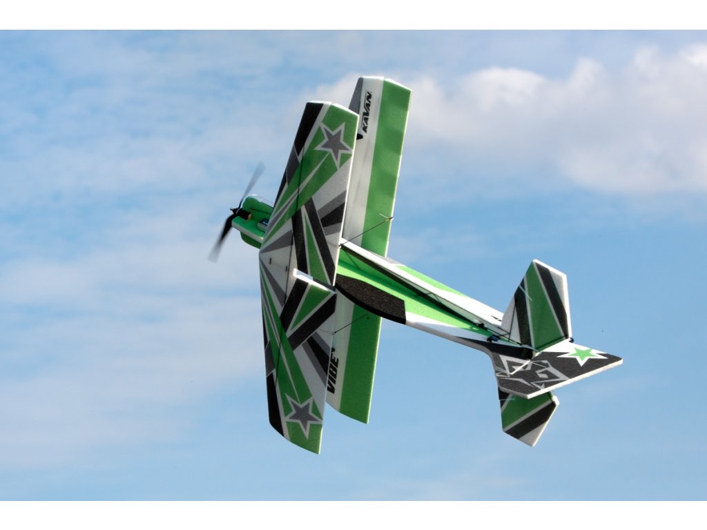 VIBE je vysokovýkonný dvouplošný 3D akrobatický speciál kategorie park-fly z pěnového EPP určený pro pohon střídavými elektromotory o výkonu 350-500 W. Pár hodin s vteřinovým lepidlem v ruce stačí pro dokončení tohoto modelu schopného létat obraty klasické F3A sestavy, stejně jako viset na vrtuli a provádět všechny ostatní 3D kousky! Je určen i pro méně zkušené piloty; s menšími výchylkami s ním může létat každý, kdo má již aspoň nějakou praxi s akrobacií a je schopen spolehlivě létat s předcházejícím modelem přemet, souvrat a výkrut. Díky nízké hmotnosti modelu případné havárie v důsledku „zapletení rukou“ příliš nebolí – a EPP díly se tak snadno opravují!