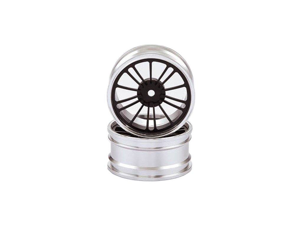 Killerbody Vám nabízí tuningové hliníkové disky pro RC modely aut 1:10. Provedení disků je v černém paprskovém designu Alfa Romeo Giuletta 2010 se stříbrným ráfkem. Rozměr disku ø 52 x 26 mm, unašeč je šestihran 12 mm s offsetem 18 mm. Balení obsahuje 2 ks.