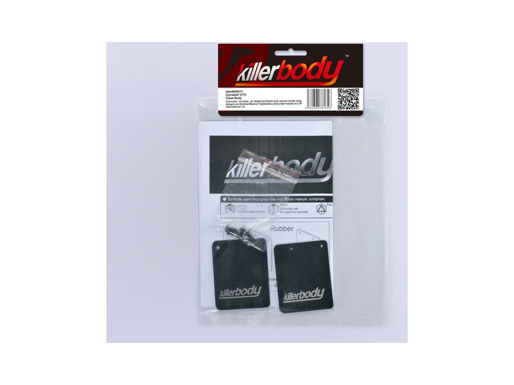 Udělejte si svůj RC model auta ještě realističtější. Černé gumové zástěrky s logem Killerbody lehce připevníte pomocí 2 šrouby a k zadnímu nárazníku. Díky zástěrkám můžete jezdit i ve špatném počasí.