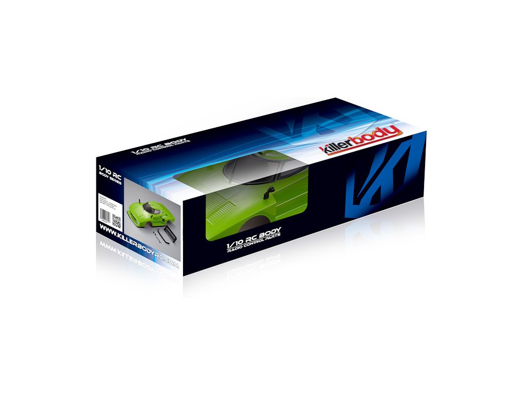 Obsahem balení je hotová karosérie pro RC modely aut 1:10 Lancia Stratos od Killerbody v zeleném provedení. Karoserie bohatá na detaily - viz obrázek.