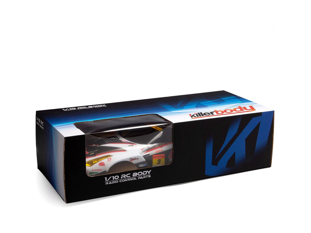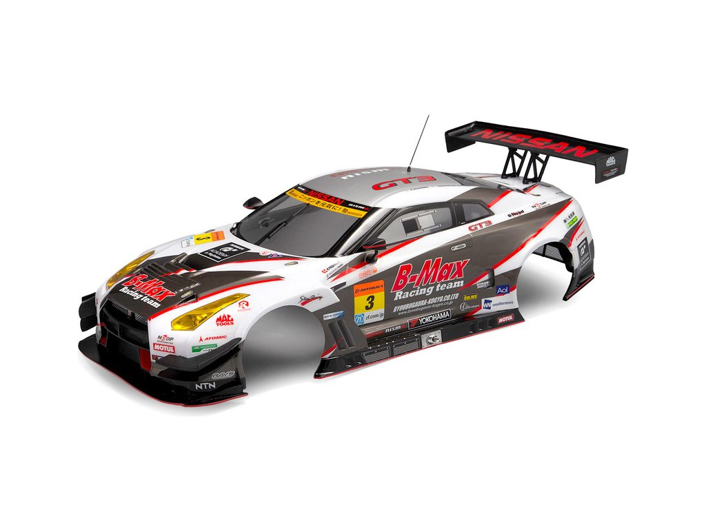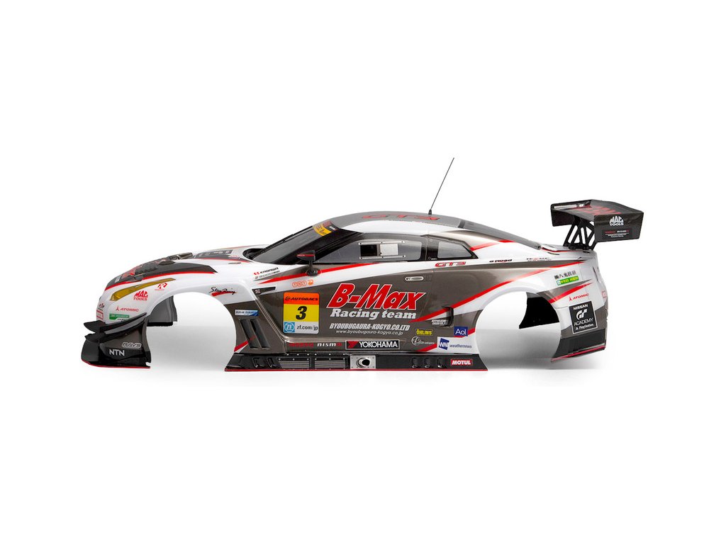 Karoserie Killerbody 1:10 Nissan B-MAX NDDP GT-R sportovního vozu upraveného jako závodní okruhový speciál.