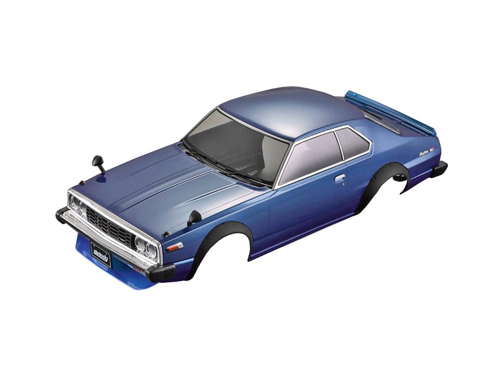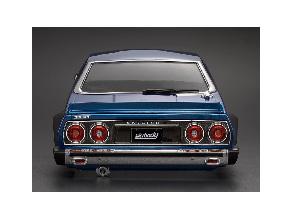 Karoserie Killerbody 1:10 Nissan Skyline Hardtop 2000 GT-ES, v modrém provedení, rozvor 257 mm, šířka 195 mm, měřítko 1:10. Vyrobeno z odolného lexanu.