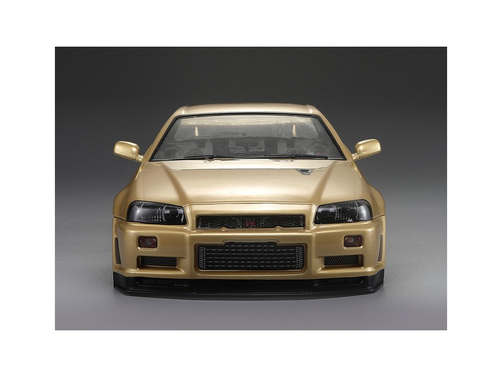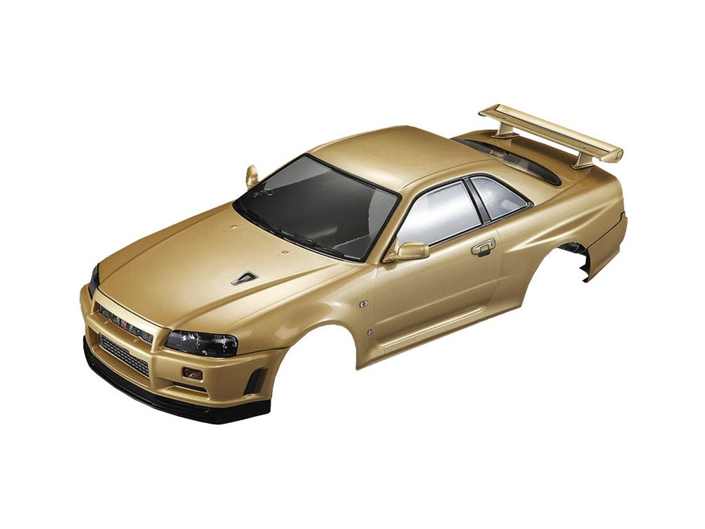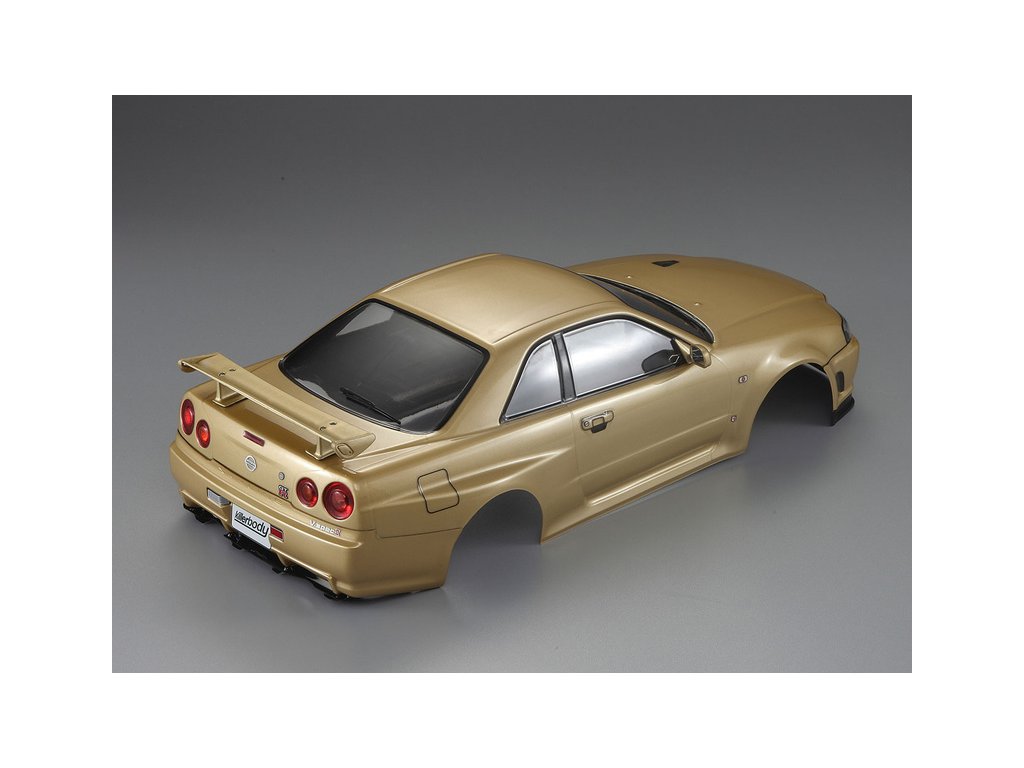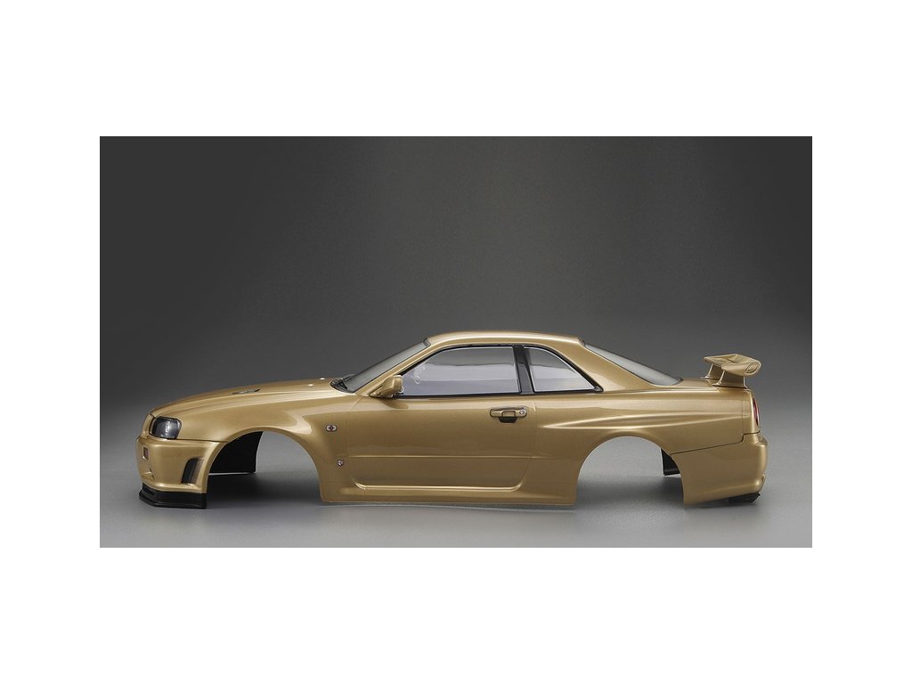 Karosérie Nissan Skyline R34 ve zlaté barvě je již sestavena. Jen otvory pro připevnění karosérie je nutno dodělat dle potřeby. Aerodynamické a elegantní zpracování karosérie auta vás určitě nezklame.