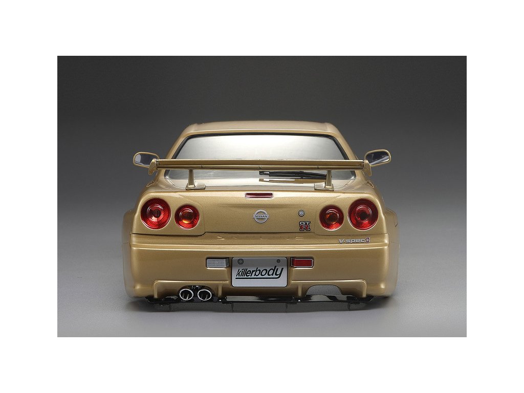 Karosérie Killerbody Nissan Skyline R34 pro RC modely aut 1:10. Zlaté provedení, rozvor 257 mm, šířka 190 mm. Vyrobeno z odolného lexanu.