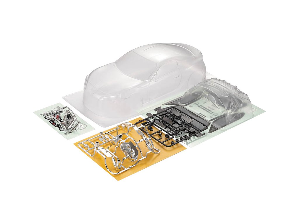 Obsahem balení je nenabarvená karosérie pro RC modely aut 1:10 Toyota 86 od Killerbody, spousta příslušenství - masky oken, sada chromovaných i plastových dílů, arch samolepek, obrázkový návod.
