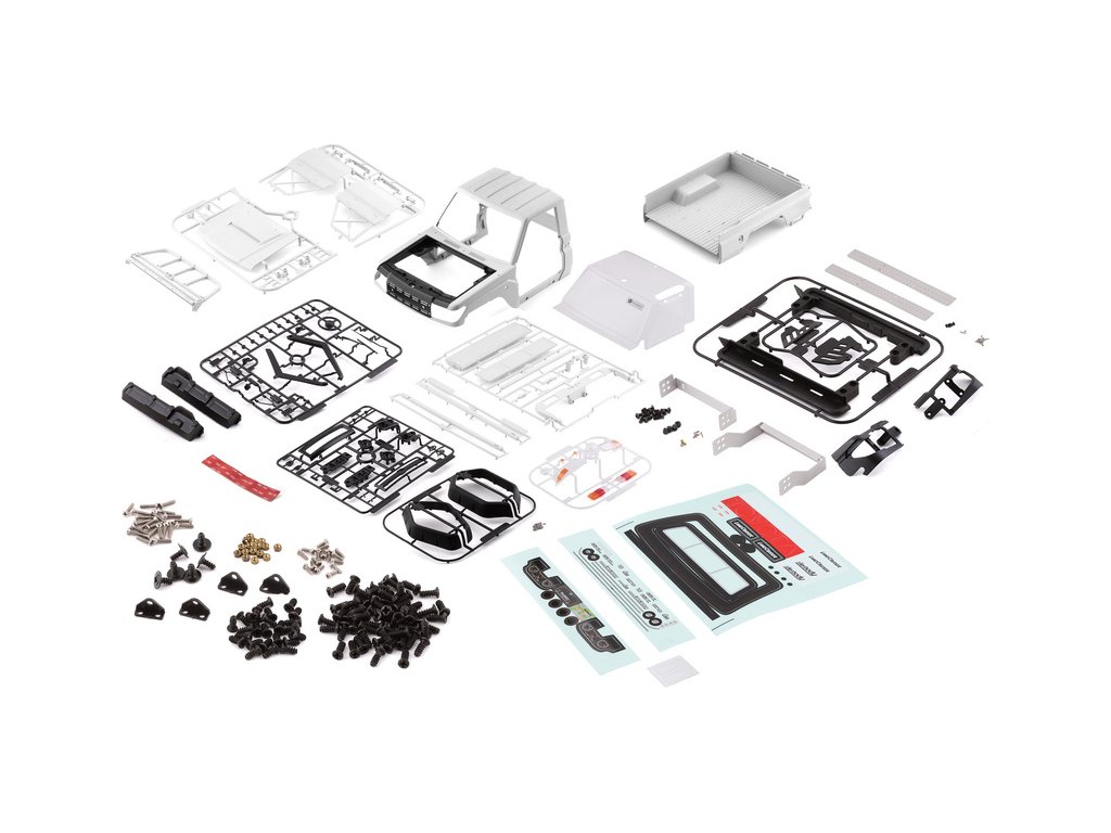 Balení s karosérii Toyota Land Cruiser 70 obsahuje tyto součásti: kabinu, nákladový prostor, chromované díly, světlomety, přední nárazník, vstupy vzduchu, zrcátka, lexanové zasklení kabiny, volant, stěrač, potřebné příslušenství k sestavení, archy samolepek – na karosérii, přístrojovou desku, obrázkový návod…