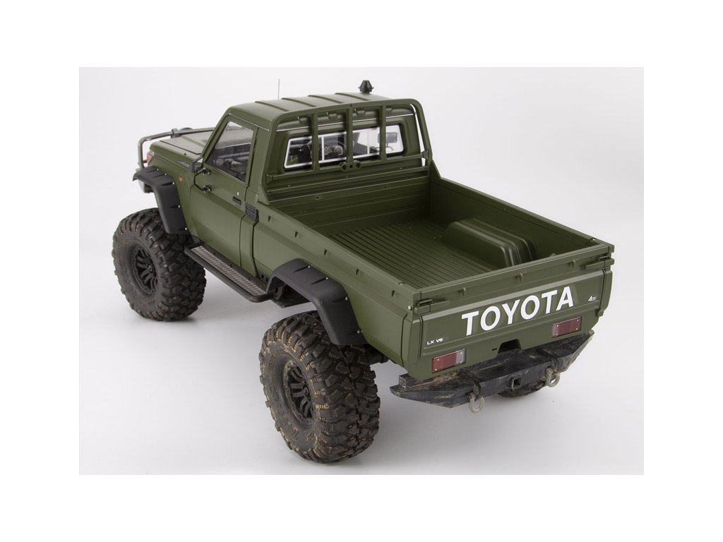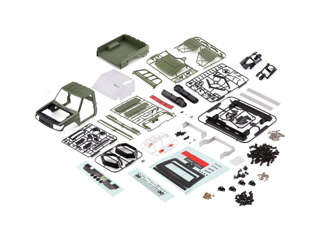 Balení s karosérii Toyota Land Cruiser 70 obsahuje tyto součásti: kabinu a nákladový prostor v zeleném provedení, chromované díly, světlomety, přední nárazník, vstupy vzduchu, zrcátka, lexanové zasklení kabiny, volant, stěrač, potřebné příslušenství k sestavení, archy samolepek – na karosérii, přístrojovou desku, obrázkový návod…