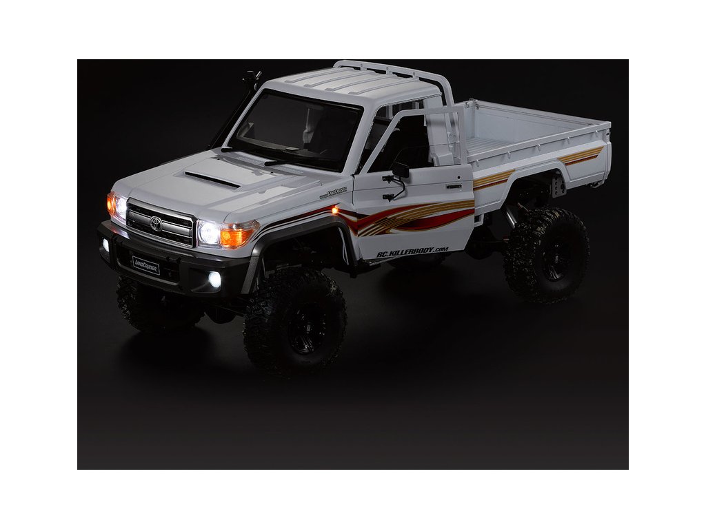 Vylepšete si svůj RC model auta 1/10 Toyota Land Cruiser 70 díky Killerbody světelné sadě s LED diodami. Balení obsahuje LED diody 3 a 5 mm, které svítí červeně, bíle, oranžově, řídící jednotku, dva Y-kabely - Rx/servo, Rx/regulátor.