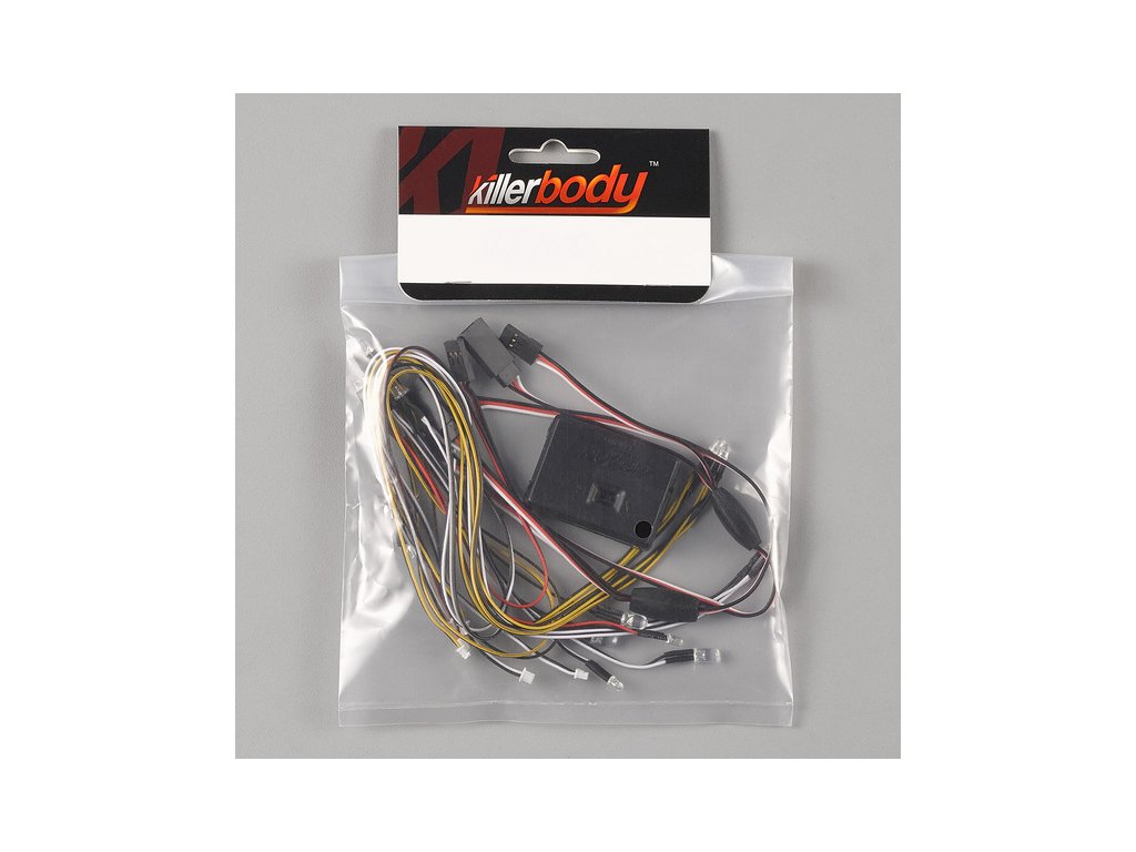 Světelná sada Killerbody s celkem 14 barevnými LED diodami pro RC modely aut. LED diody mají průměr 3 a 5 mm.