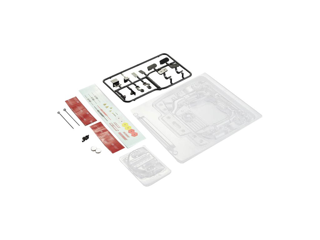 Obsahem balení je maketa motoru v čirém provedení, arch samolepek, plastová montážní sada, oboustranná lepící páska, obrázkový návod.