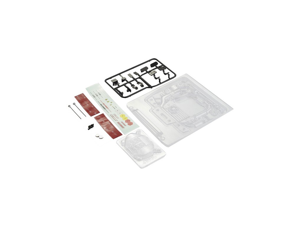 Obsahem balení je maketa motoru v čirém provedení, arch samolepek, plastová montážní sada, oboustranná lepící páska, obrázkový návod.