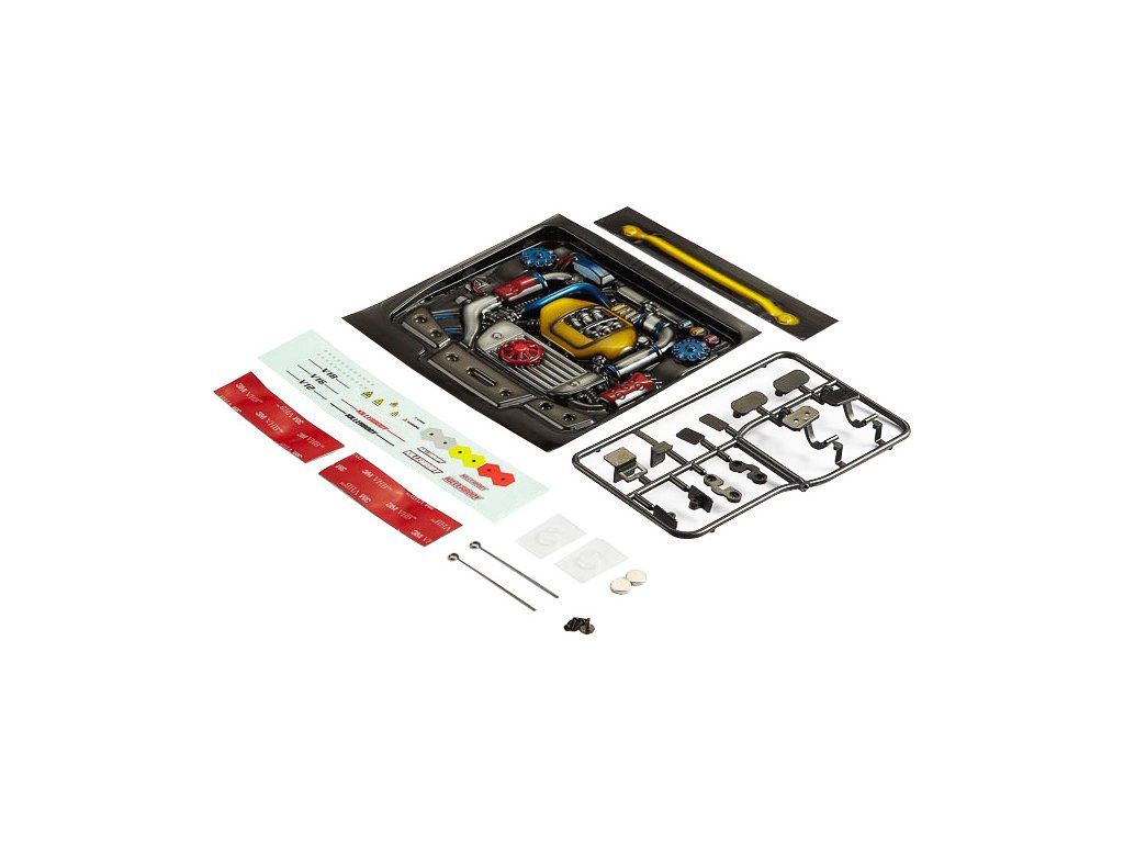 Obsahem balení je maketa motoru v barevném provedení, arch samolepek, montážní příslušenství, oboustranná lepící páska, obrázkový návod.