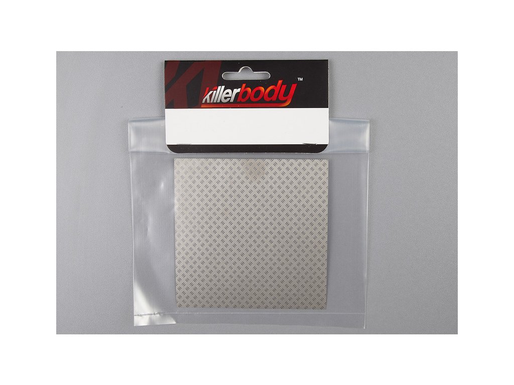 Killerbody Vám nabízí maketu protiskluzového plechu pro RC modely aut. Plech je z nerezové oceli o rozměru 100 x 100 x 0,1 mm v designeru tvaru běhounů ve stříbrném provedení.