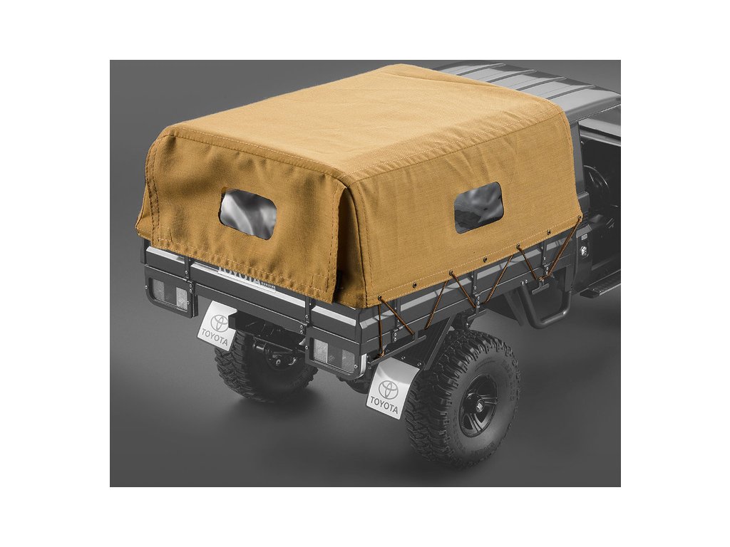 Killerbody Vám nabízí plachtovou střechu na karoserii 1/10 Toyota Land Cruiser 70 pro šasi Traxxas TRX-4. Střecha je z textilu v pískově-hnědém barevném provedení.