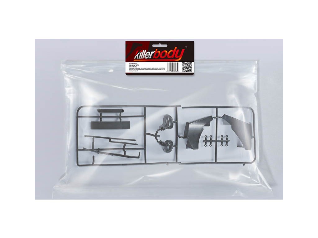 Náhradní plastové díly pro RC model auta Alfa Romeo 8C 1:7 od Killerbody. Plastové díly jsou v černém provedení. Balení obsahuje zpětné zrcátka, stěrače, křídlo.