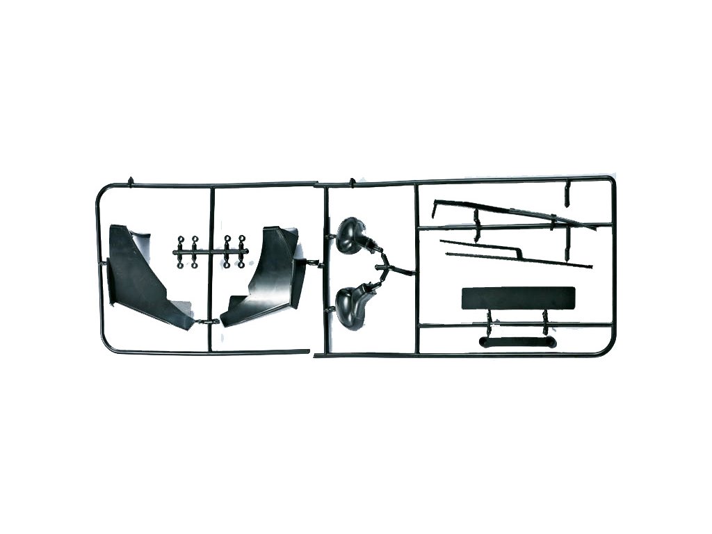 Plastové díly jsou v černém provedení bez montážního příslušenství. Díly je potřeba odstřihat od výlisku a začistit.