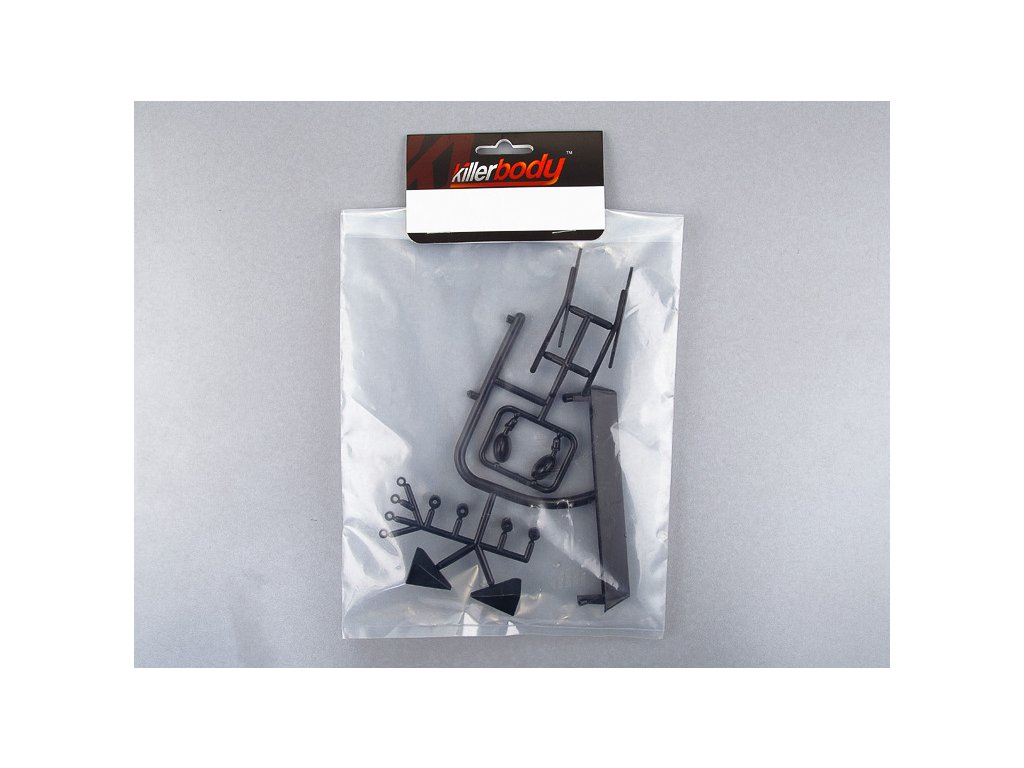Černé díly od Killerbody na RC model auta Lancia Delta HF Integrale 1:10. Díly jsou vyrobeny z odolného ABS materiálu. Balení obsahuje plastové přední stěrače, zpětné zrcátka, zadní křídla.