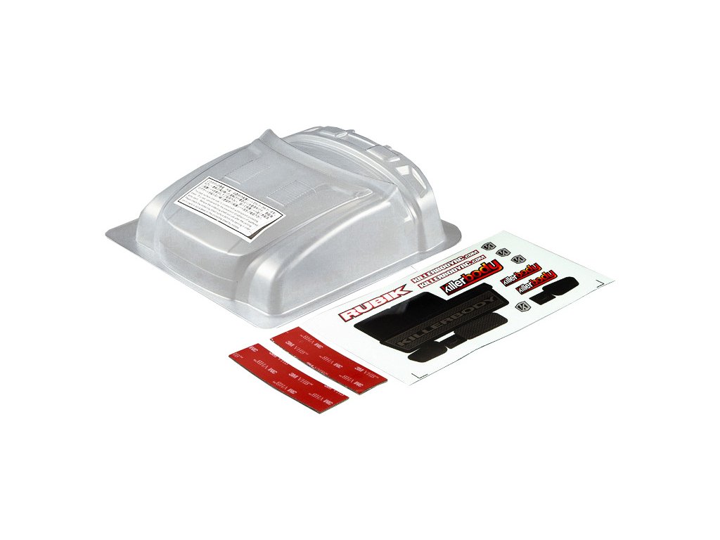 Přední kapota s nárazníkem typ A od Killerbody pro RC modely aut Rubik 1:10. Kapota s nárazníkem jsou v čirém provedení, vyrobené z odolného lexanu. Balení obsahuje přední kapotu, přední nárazník, samolepky, oboustrannou lepící pásku.