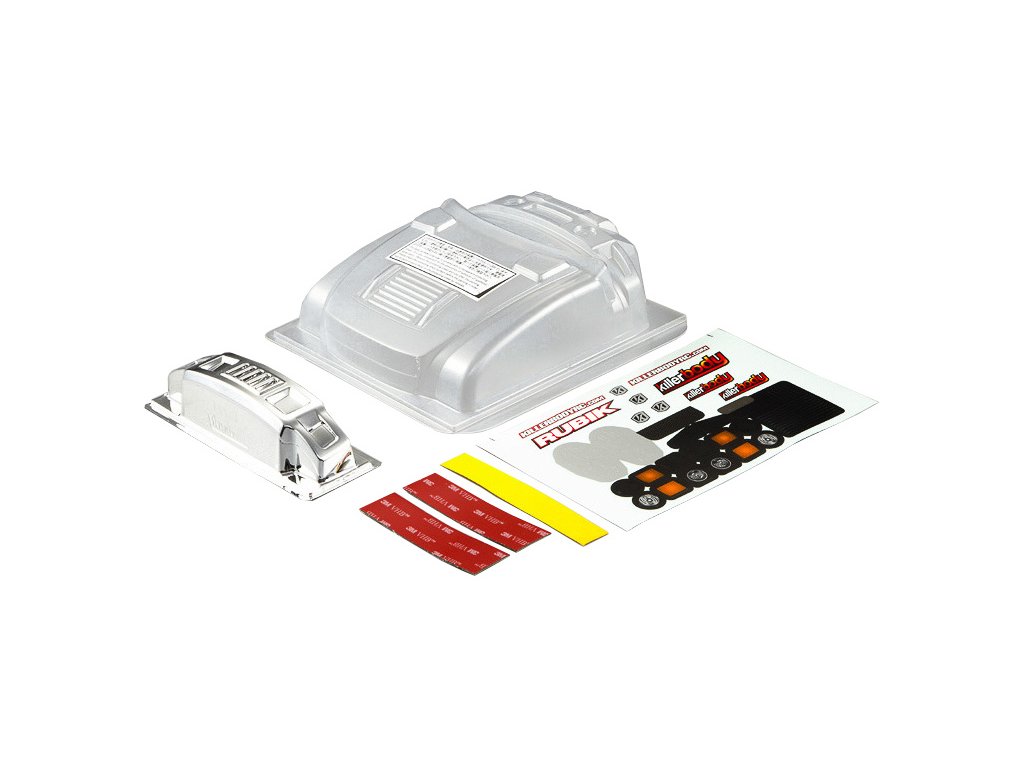 Přední kapota s nárazníkem typ C od Killerbody pro RC modely aut Rubik 1:10. Kapota je v čirém provedení, chromový nárazník je vyrobené z odolného lexanu. Balení obsahuje přední kapotu, přední chromový nárazník, samolepky, oboustrannou lepící pásku.