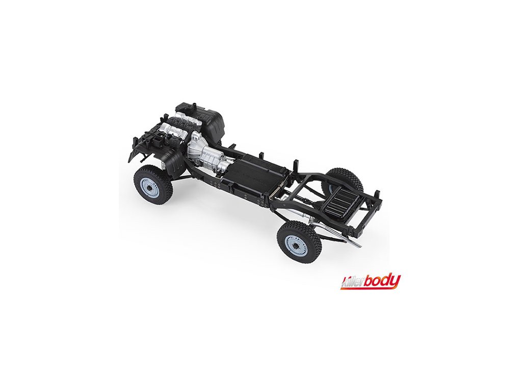 Model je velmi všestranný a díky mnoha funkcím si s ním užijete spoustu zábavy v terénu a při překonávání překážek. Obsaženy jsou funkce - přepínání mezi náhon 2WD a 4WD, dvourychlostní převodovka a uzávěrky diferenciálů. Přední zavěšení je více-prvkové s přímými nápravami, zadní zavěšení je s maketovými listovými pery.