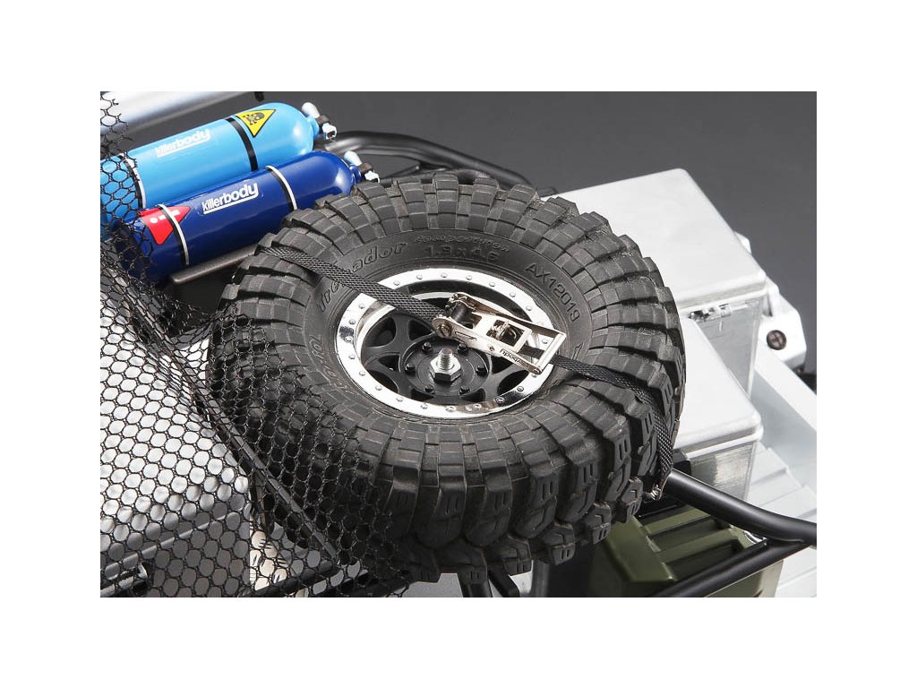 Killerbody Vám nabízí pro RC modely 1:10 textilní stahovací kurtnu 140 mm. Páska je v černém provedení s kovovou sponou. Na každém konci pásku jsou připevněny kovové háčky pro připevnění.
