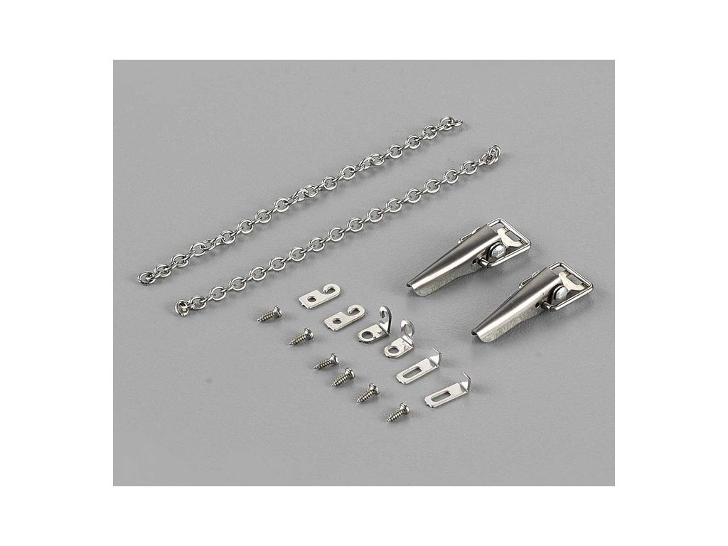 Killerbody Vám nabízí doplněk ke karoserii 1/10 Toyota Land Cruiser 70 v podobě upínacích řetězů se sponami. Řetězy a spony jsou vyrobené z nerezové oceli, ve stříbrném provedení. Obsahem balení je 2 x řetězy, 2 x spony, montážní příslušenství.