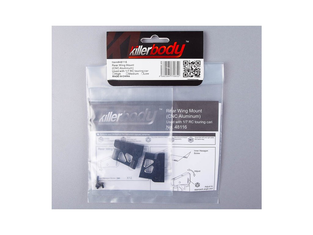 Killerbody nabízí nízké černé hliníkové vzpěry pro připevnění křídla na karosérii RC modelů aut 1:7. Balení obsahuje vzpěry, montážní sadu.