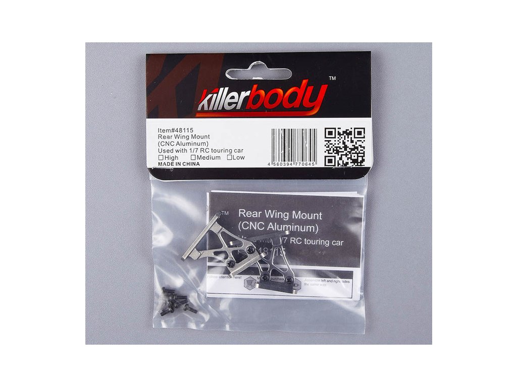 Vylepšete si svůj RC model auta. Killerbody Vám nabízí střední hliníkové vzpěry v šedém provedení pro zadní křídlo např. KB48109, které se připevní pomocí vrutů ke karosérii modelu.