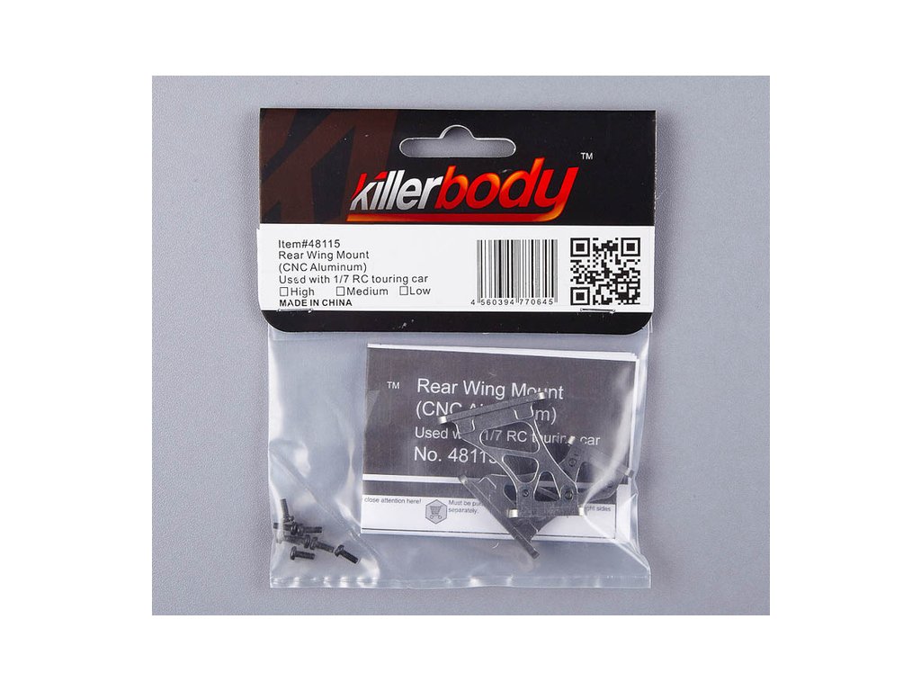 Vylepšete si svůj RC model auta. Killerbody Vám nabízí vysoké hliníkové vzpěry v šedém provedení pro zadní křídlo např. KB48109, které se připevní pomocí vrutů ke karosérii modelu.