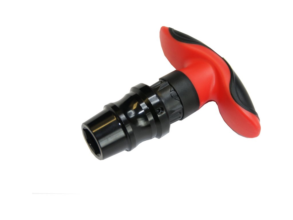 Klíč nástrčkový deluxe 14mm je určen na matice kol. Pro dobrý záběr utažení má speciální tvar ručky, pomocí které snadno utáhnete a povolíte matici. Uvnitř je ještě 6mm šestihran pro bity. Ráčnu lze blokovat nebo s řehtačkou utahovat či odtahovat. Délka ručky je 86mm, šířka 25mm. Celková délka je 85mm, přední kužel má rozměr 21/23mm.