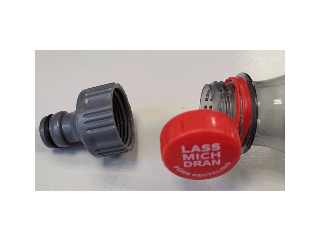 Závitová spojka pro nové PET lahve s neodnímatelným vrškem. Speciální uzávěr na PET láhve pro raketu Klima Aqua Star.