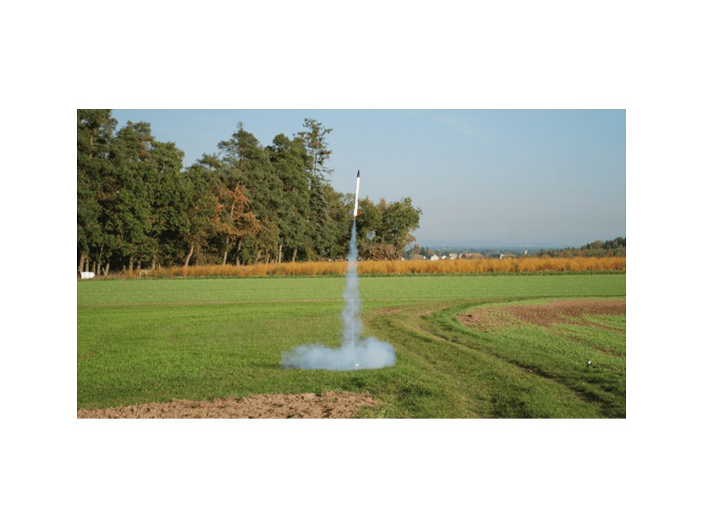 - Zapálení motoru - palníkem je zapálena pohonná směs v motoru. Požadovaný směr letu zajistí vodící tyč odpalovací rampy, na které je nasunuta raketa.