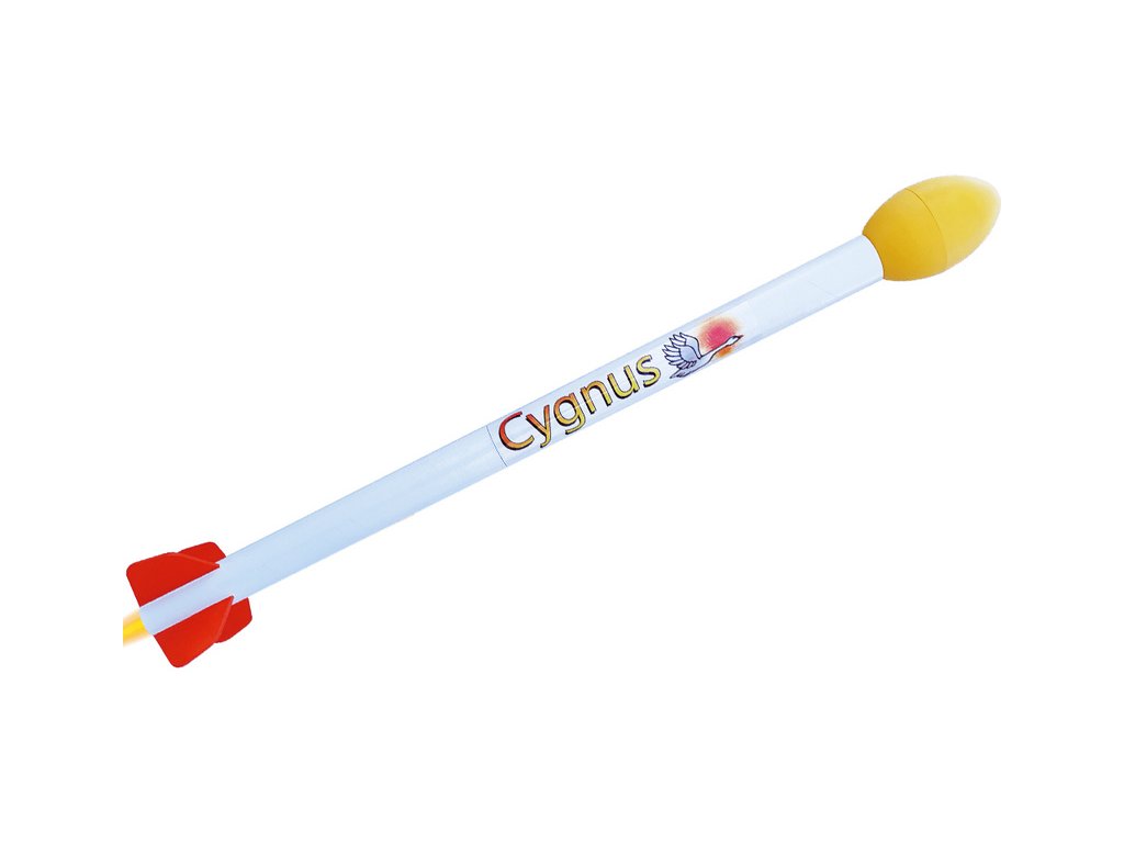 Raketa Cygnus je vybavena speciální částí pro užitečné zatížení, vejde se do ní vejce. Horní část speciální dvoudílné hlavice, se připevní ke spodní části lepicí páskou. Pokud syrové vejce přežije let včetně přistání, lze hovořit o dokonalém letu. S touto raketou se tedy můžete zuúčastnit i soutěže. Raketu můžete samozřejmě naložit i jiným nákladem. Model rakety obsahuje trvalou ochranu padáku (dřevěnou pohyblivou přepážku) a nevyžaduje pro ochrannou uvpávku výmetu. Stabilizátory jsou vyrobeny z frézované překližky jsou velmi pevné, nasazují se do drážky v trubce rakety. Obtisk Cygnus dotváří vzhled modelu. Přistání probíhá pomocí dodaného padáku.