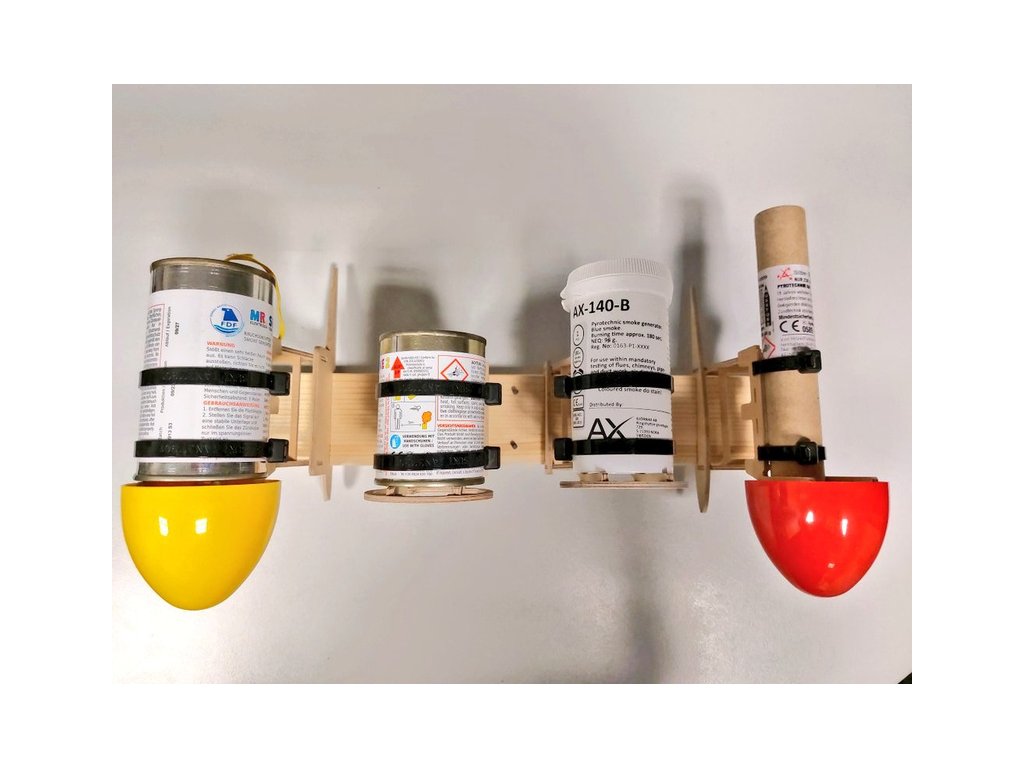 Lehký a pevný univerzální držák dýmovnic s aerodynamicky tvarovaným ochranným krytem, nabízí široké možnosti montáže na křídla modelů letadel. Vhodné pro dýmovnice s průměrem pouzdra 25 až 55 mm. Perfektní pro modeláře, kteří chtějí své letadlo vybavit vizuálními efekty bez složitých úprav konstrukce.