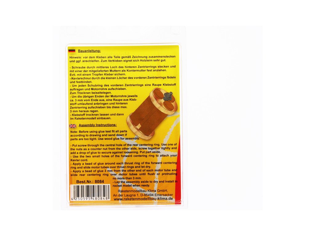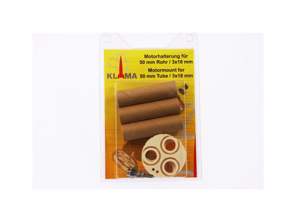 Klima Držák motoru 50 mm / 3x 18 mm, Za účelem provozování větších modelů které mají trubku o průměru 50 mm se třemi motory o průměru 18 mm, byl vyvinut speciální držák motoru. Ten sestává ze tří trubek 18 a kroužků o průměru 48,8 mm. V sestavě je i vytahovák.