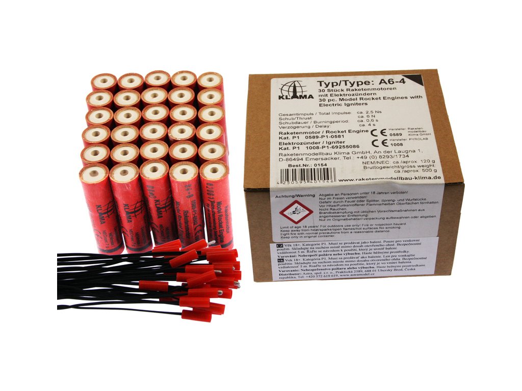 Obsahem balení je30 ks raketových motorků Klima A6-4 EL včetně elektrických palníků, návod k použití.